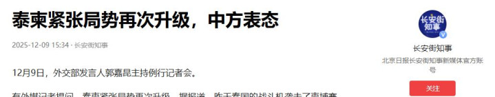 作为两国的近邻和朋友,中方早就密切关注着泰柬冲突的发展,在局势升级的第一时间就采取了行动。12 月 9 号,中国驻泰国大使馆发布了紧急安全提示,明确提醒在泰国乌汶、四色菊、素林等七个府的中国公民,一定要密切关注安全形势,遵守泰政府的安全指引,加强自身防范,尽量不要前往边境冲突地区。同时,使馆还公布了应急热线,一旦在泰中国公民遇到紧急情况,既能及时报警,也能第一时间联系使领馆寻求协助。外交部发言人也在例行记者会上表态,希望泰柬双方保持克制、相向而行,防止局势进一步升级,中方会继续以自己的方式为缓和局势发挥建设性作用。