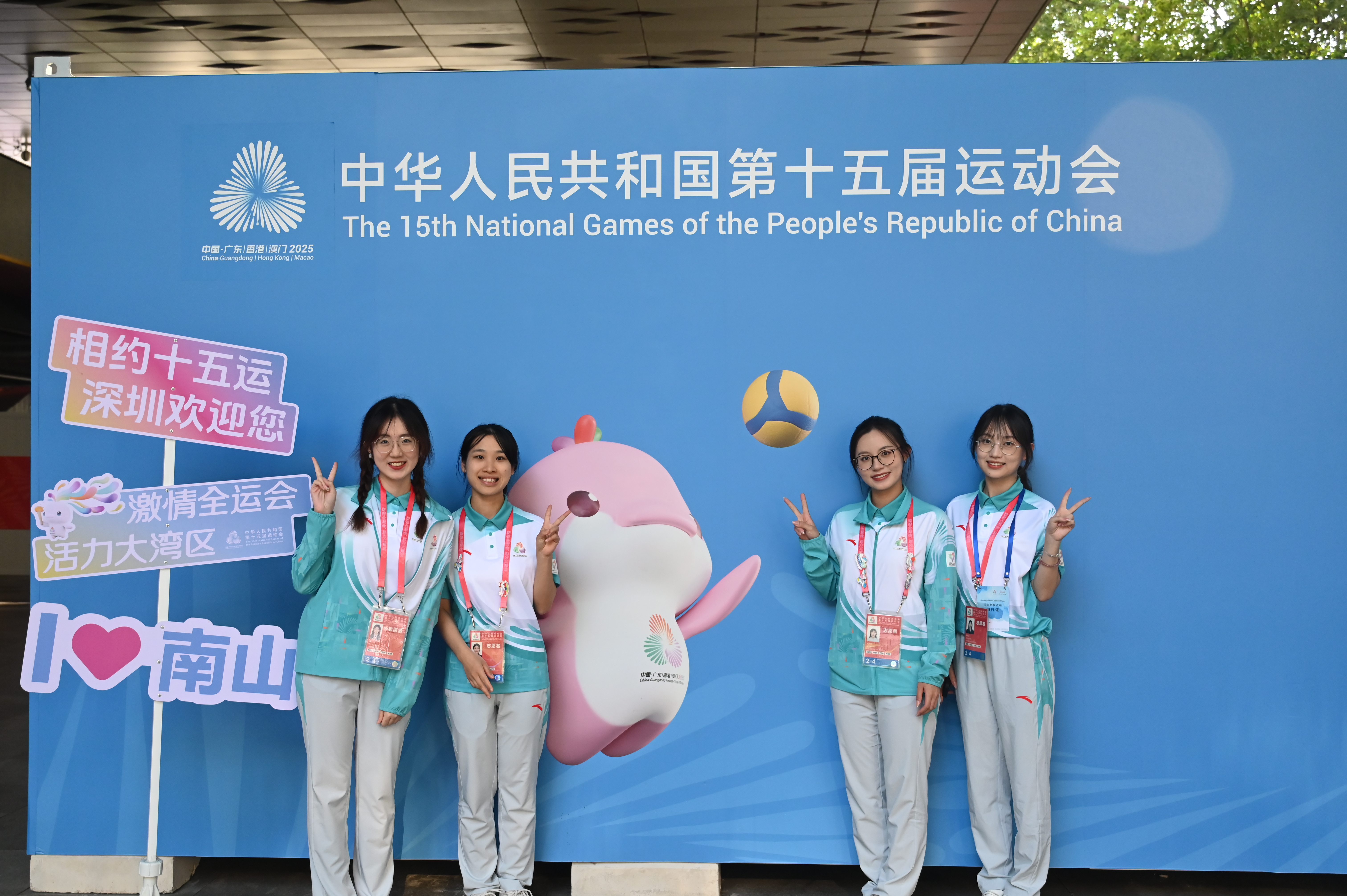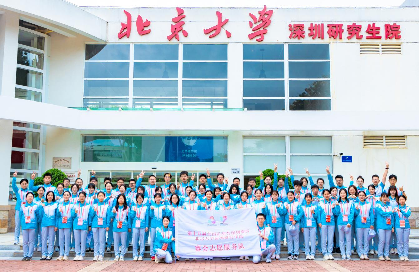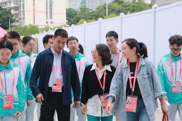 在十五运会赛事进行期间,北大深研院党委副书记、纪委书记安晓朋一行走进赛事服务现场,看望坚守岗位的“小海豚”志愿者们,用关怀与期许为大家注入强劲动力。