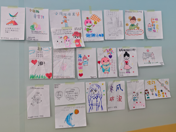 在赛事服务期间,“小海豚”们还收到了来自南山区少先队员们的暖心祝福。这份心意也让志愿者们倍感温暖,成为此次志愿之行中一份珍贵的纪念。