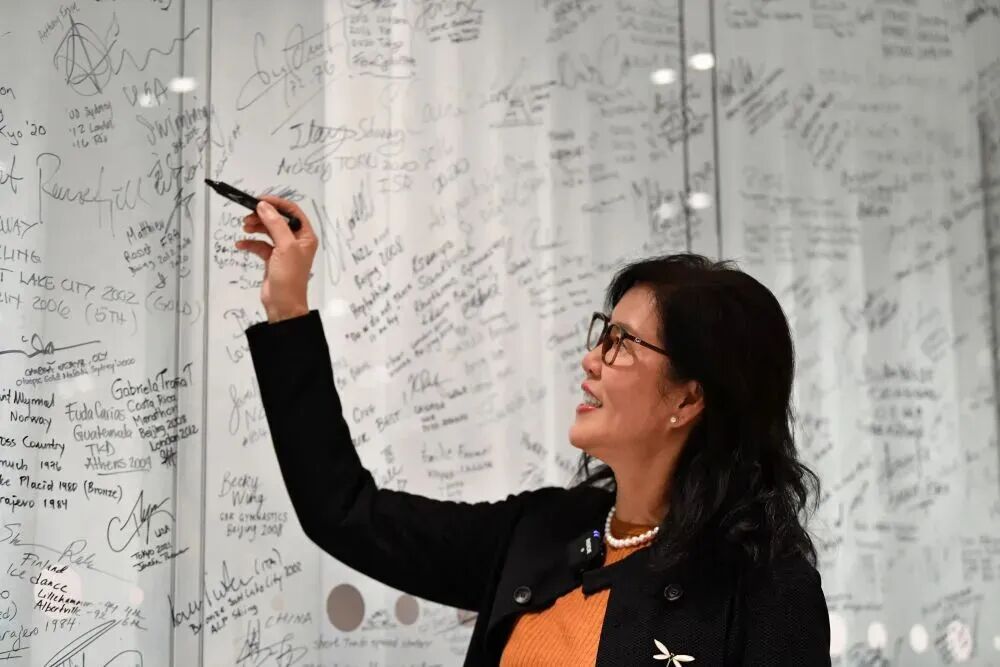 郎平颁奖仪式后在签名墙上签名溢诚优配