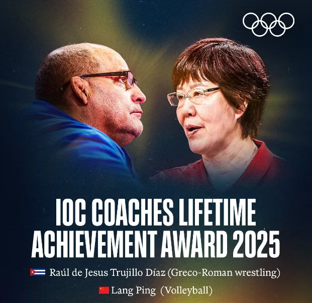 11月24日,中国女排国家队前主教练、北京师范大学研究员郎平在国际奥委会总部获颁2025年度国际奥委会教练员终身成就奖。与她一起获得该奖项的还有古巴摔跤教练迪亚兹。